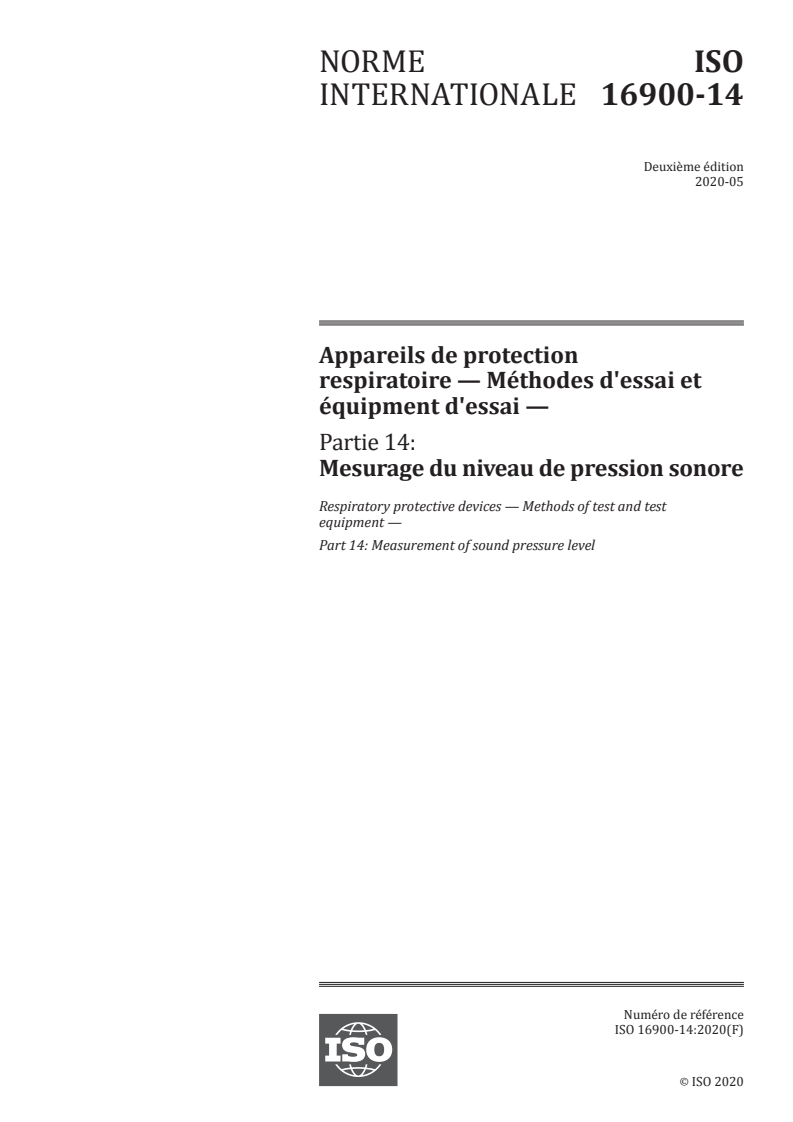 ISO 16900-14:2020 - Appareils de protection respiratoire — Méthodes d'essai et équipement d'essai — Partie 14: Mesurage du niveau de pression acoustique/8/2020