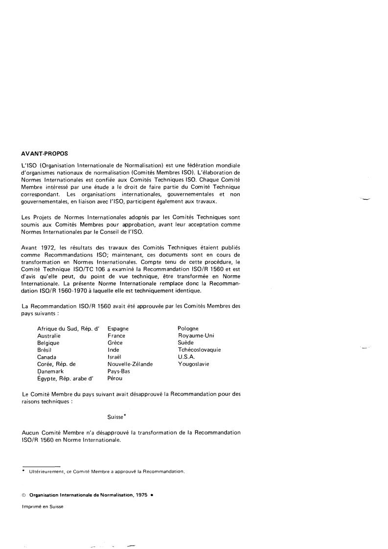 La Recommandation ISO/R 1560 avait été approuvée par les Comités Membres des