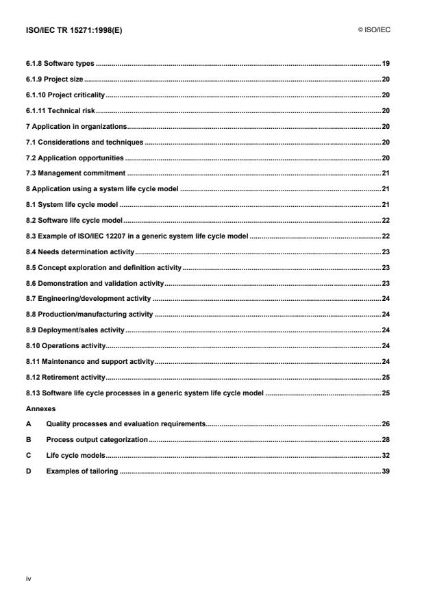 projects, clause 7 Application in organizations and clause 8 Application using a system life cycle model.