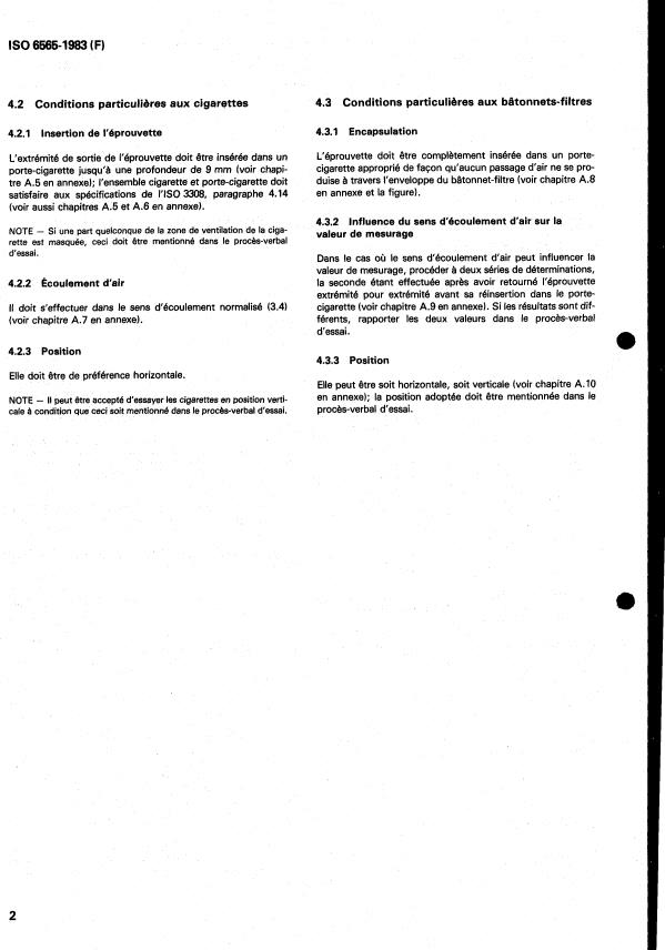 4.2 Conditions particulières aux cigarettes 4.3 Conditions particulières aux bâtonnets-filtres