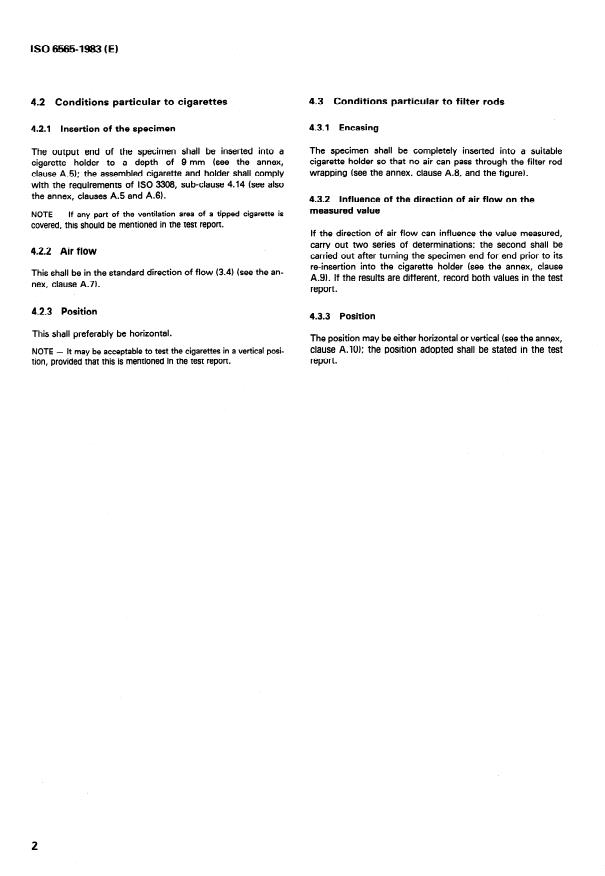 ISO 6565:1983 - Tobacco and tobacco products -- Draw resistance of cigarettes and filter rods -- Definitions, standard conditions and general aspects
