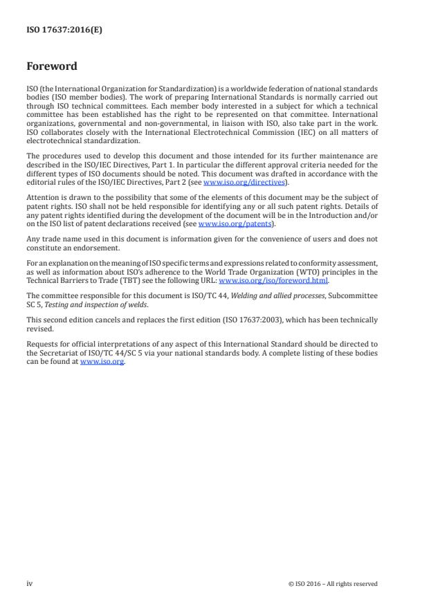 ISO 17637:2016 has the following relationships with other standards: It is inter standard links to ISO 17637:2003. Understanding these relationships helps ensure you are using the most current and applicable version of the standard.