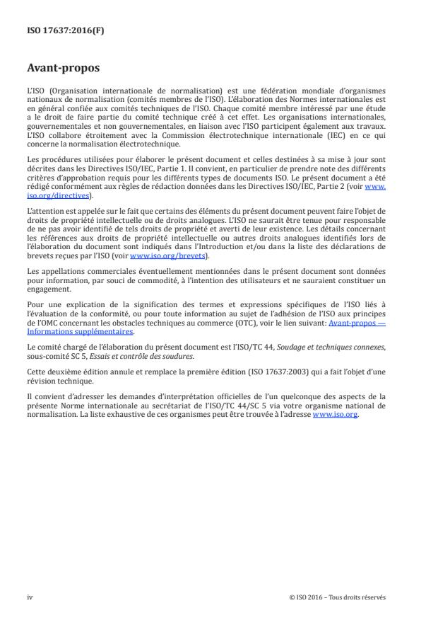 Cette deuxième édition annule et remplace la première édition (ISO 17637:2003) qui a fait l’objet d’une
