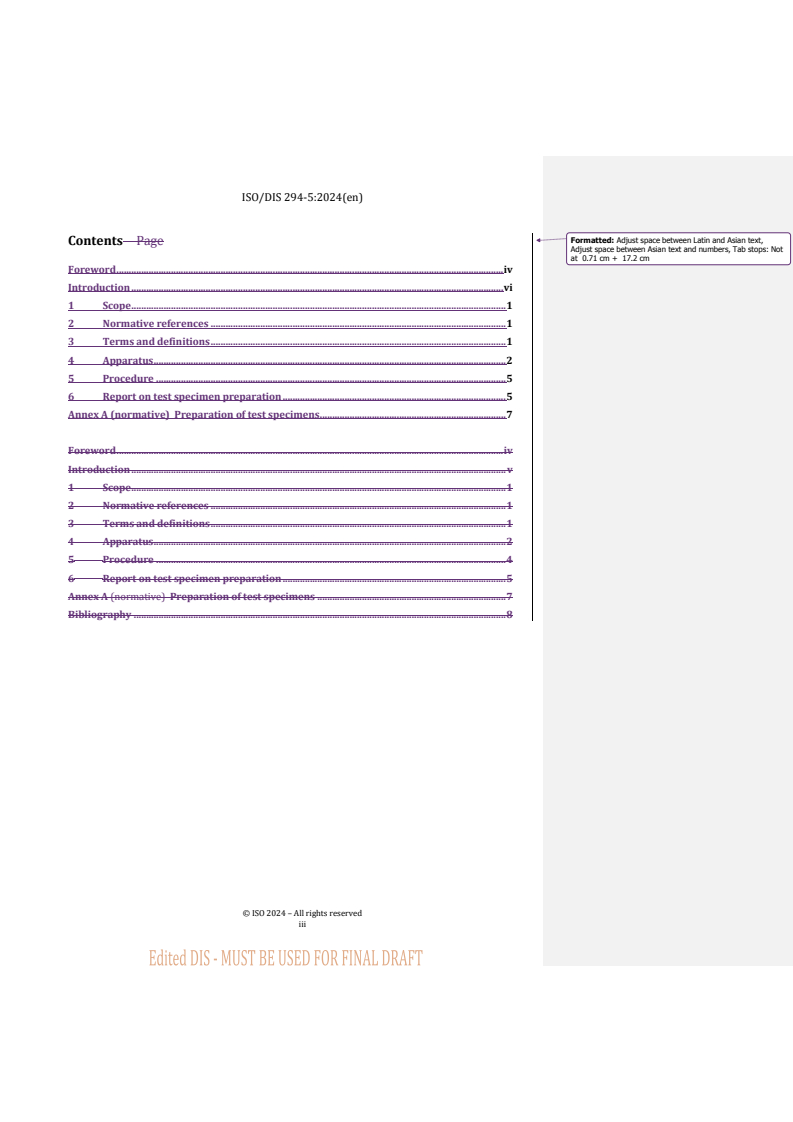 REDLINE ISO/FDIS 294-5 - Plastics — Injection moulding of test specimens of thermoplastic materials — Part 5: Preparation of standard specimens for investigating anisotropy Released:10/3/2025