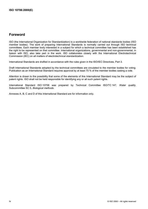 ISO 10706:2000 is classified under the following ICS (International Classification for Standards) categories: 13.060.70 - Examination of biological properties of water. The ICS classification helps identify the subject area and facilitates finding related standards.