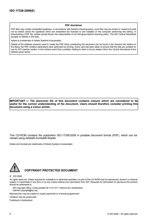 This CD-ROM contains the publication ISO 17338:2009 in portable document format (PDF), which can be