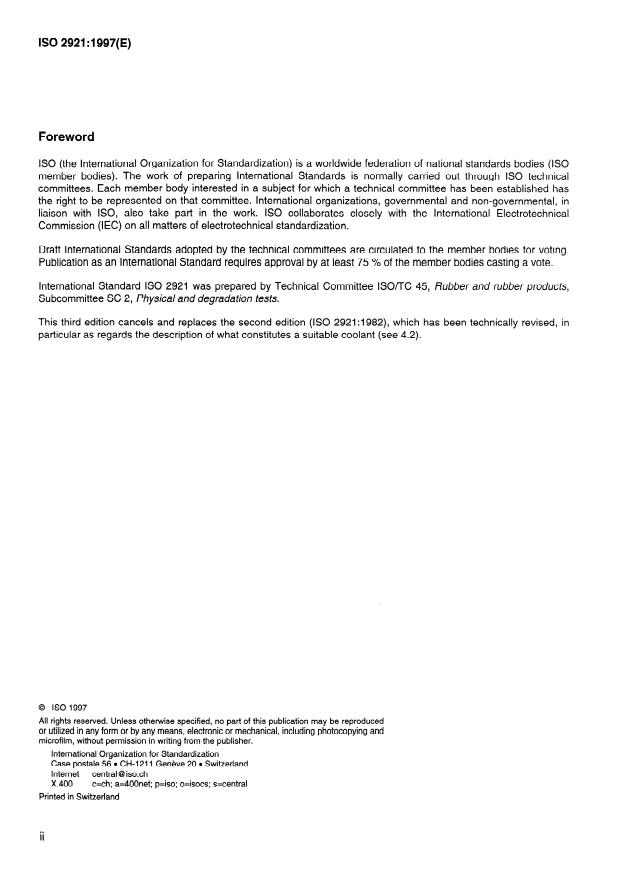 International Standard IS0 2921 was prepared by Technical Committee ISO/TC 45, Rubber and rubber products,