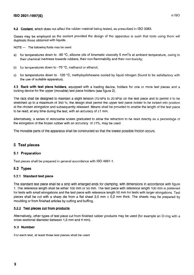 ISO 2921:1997 - Rubber, vulcanized -- Determination of low-temperature characteristics -- Temperature-retraction procedure (TR test)
