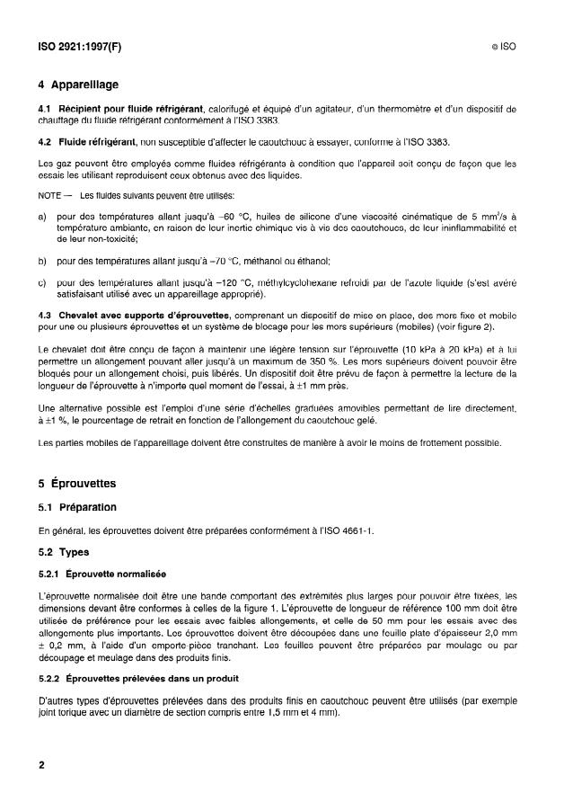 ISO 2921:1997 - Caoutchouc vulcanisé -- Détermination des caractéristiques a basse température -- Méthode température-retrait (essai TR)