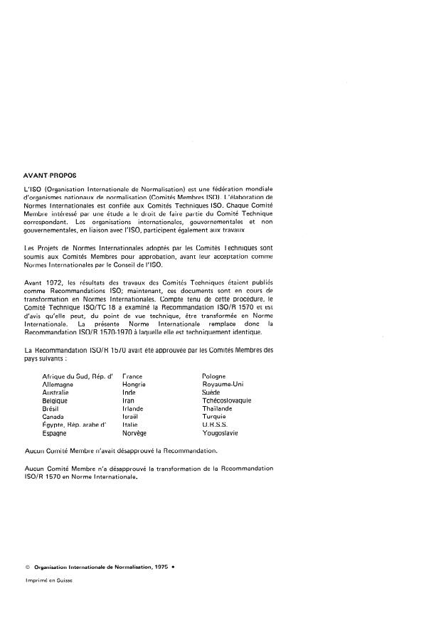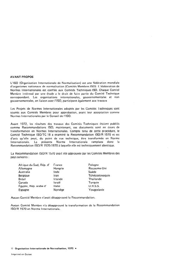 replaces ISO Recommendation R 1570-1970 to which it is technically identical.