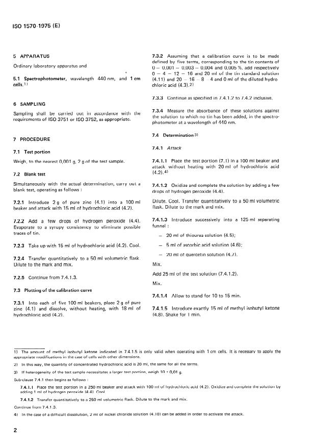 ISO 1570:1975 - Zinc and zinc alloys -- Determination of tin content -- Spectrophotometric method