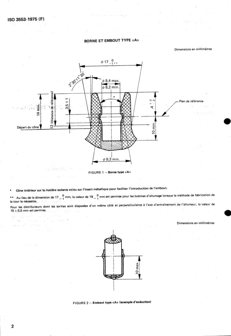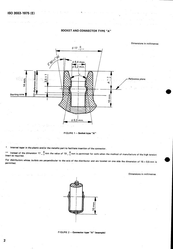 ISO 3553:1975 - Road vehicles — High tension connection for ignition coils and distributors Released:8/1/1975
