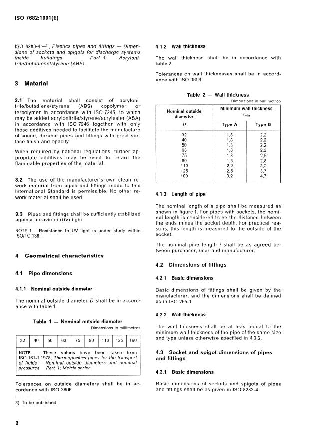 ISO 7682:1991 - Acrylonitrile/butadiene/styrene (ABS) pipes and fittings for soil and waste discharge (low and high temperature) systems inside buildings -- Specifications