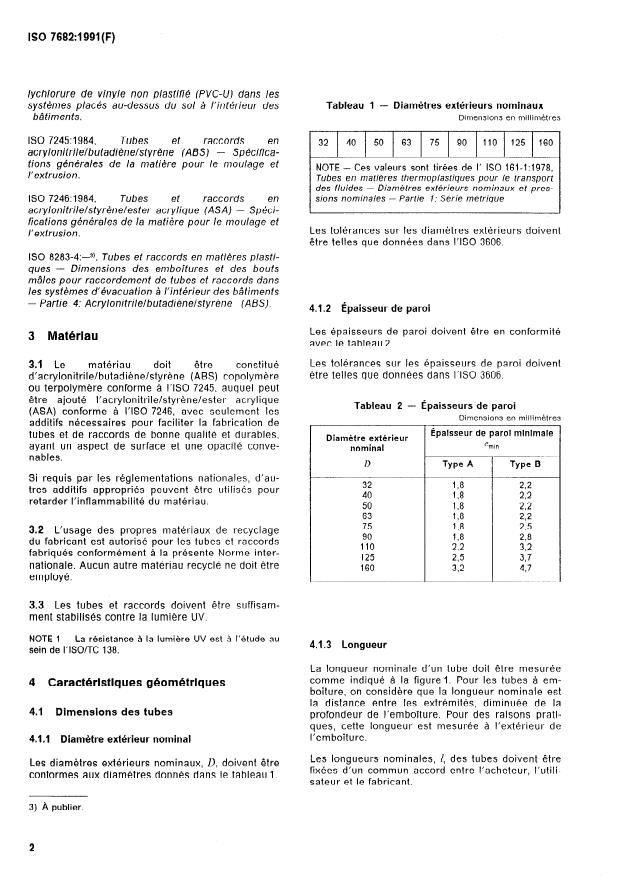 ISO 7682:1991 - Tubes et raccords en acrylonitrile/butadiene/styrene (ABS) pour les systemes d'évacuation d'eaux usées et d'eaux-vannes (a basse et a haute température) a l'intérieur des bâtiments -- Spécifications
