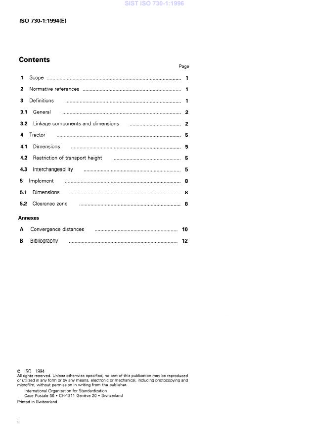 ISO 730-1:1994 is a standard published by the International Organization for Standardization (ISO). Its full title is "Agricultural wheeled tractors — Rear-mounted three-point linkage — Part 1: Categories 1, 2, 3 and 4". This standard covers: Cancels and replaces the second edition (ISO 730-1 (1990) and ISO 730-3 (1982)). Describes the dimensions and requirements of the three-point linkage for the attachment of implements or equipment to the rear of agricultural wheeled tractors. Specifies four categories to be used on different ranges of agricultural tractors.
