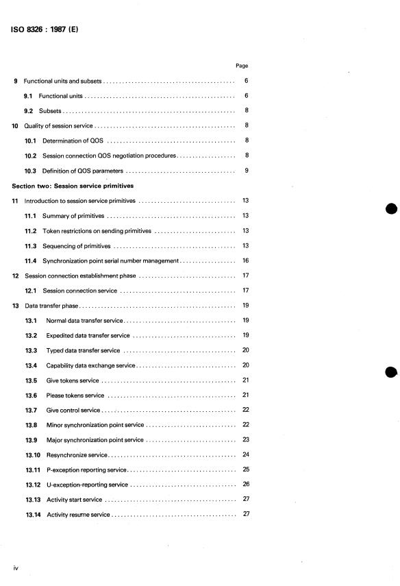 ISO 8326:1987 is a standard published by the International Organization for Standardization (ISO). Its full title is "Information processing systems — Open Systems Interconnection — Basic connection oriented session service definition". This standard covers: Information processing systems — Open Systems Interconnection — Basic connection oriented session service definition
