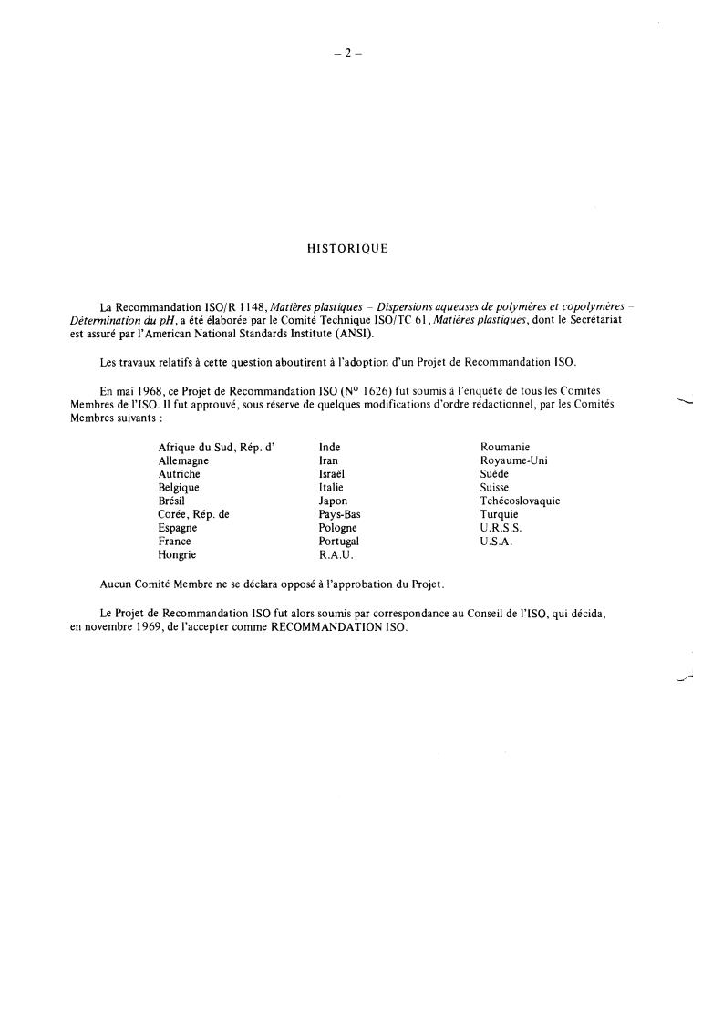 En mai 1968, ce Projet de Recommandation IS0 (No 1626) fut soumis à l’enquête de tous les Comités