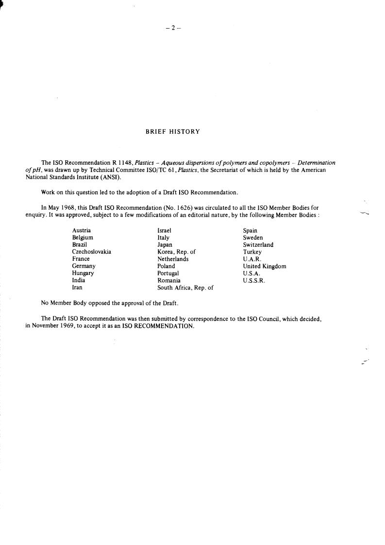 In May 1968, this Draft IS0 Recommendation (No. 1626) was circulated to all the IS0 Member Bodies for