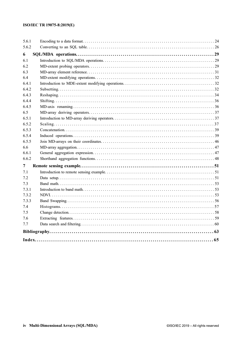 This Technical Report describes the support in SQL for Multi-Dimensional Arrays (MDA) as defined in ISO/IEC 9075-15.