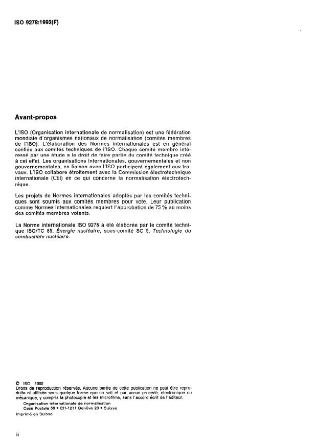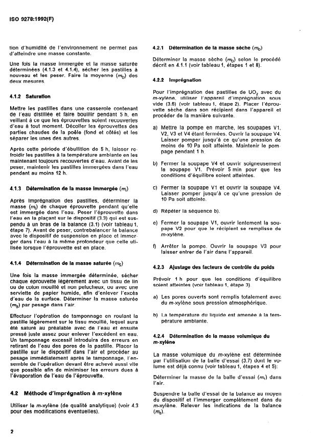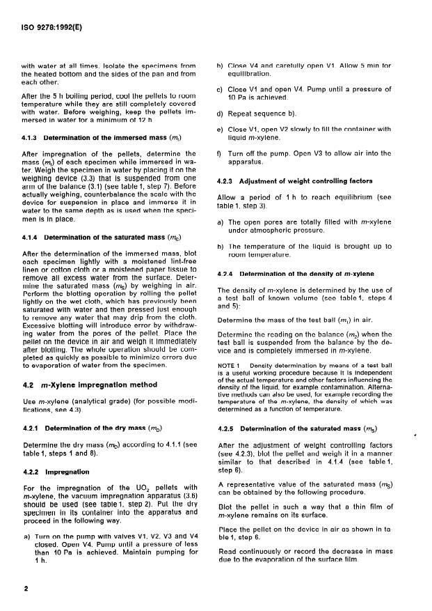ISO 9278:1992 is a standard published by the International Organization for Standardization (ISO). Its full title is "Uranium dioxide pellets — Determination of density and amount of open and closed porosity — Boiling water method and penetration immersion method". This standard covers: Describes for two methods the principle, the apparatus, the procedure of the boiling water method and of the m-Xylene impregnation method, the precision, the expression of results and the contents of the test report.