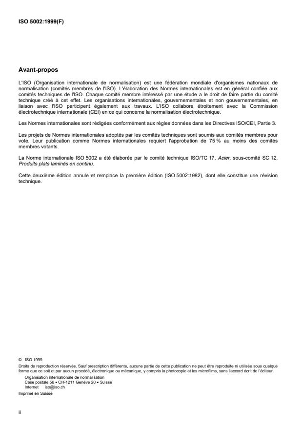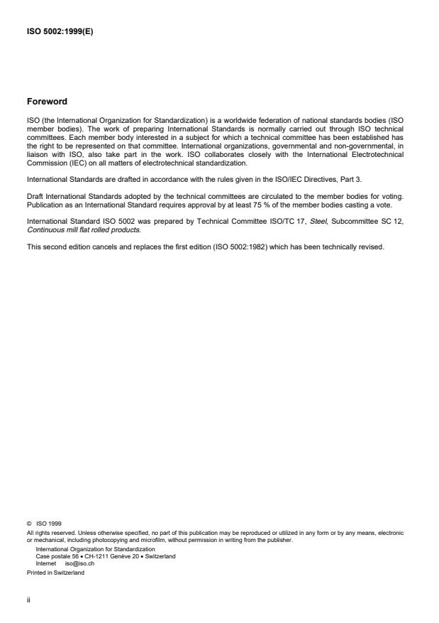 International Standard ISO 5002 was prepared by Technical Committee ISO/TC 17, Steel, Subcommittee SC 12,