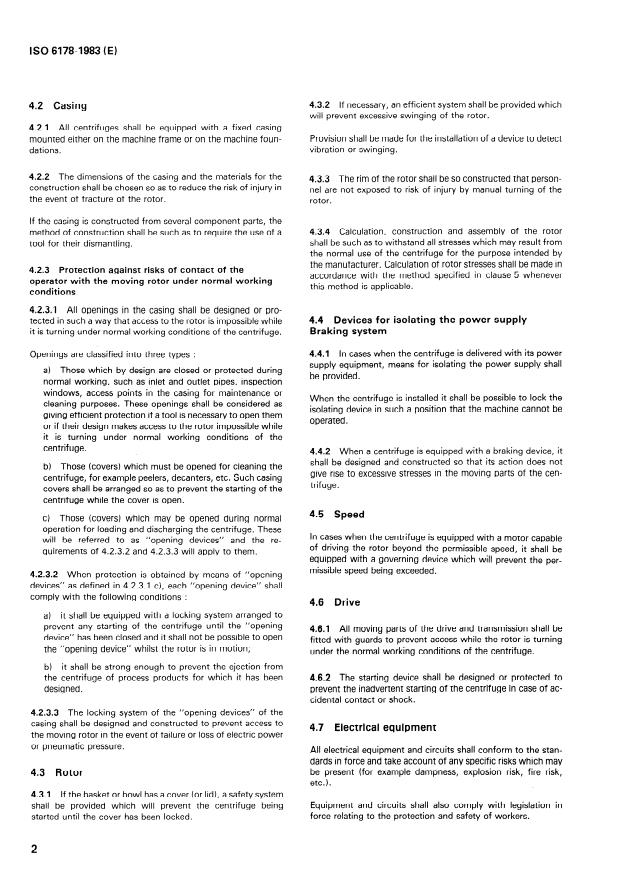 ISO 6178:1983 is a standard published by the International Organization for Standardization (ISO). Its full title is "Centrifuges — Construction and safety rules — Method for the calculation of the tangential stress in the shell of a cylindrical centrifuge rotor". This standard covers: These construction and safety rules do not apply to the following centrifuges, which are expressively excluded from the field of application of this International Standard: centrifuges in which the kinetic energy of the loaded rotor is less than 750 J; centrifuges considered to be electric motor-driven domestic machines; centrifuges with a circumferential speed greater than 300 m/s; centrifuges used exclusively for processing of atomic energy products.