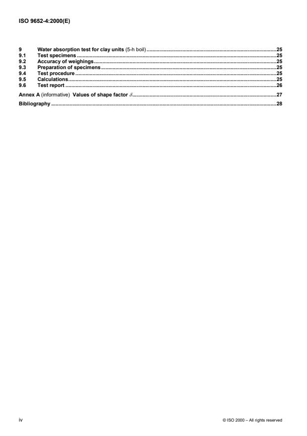 ISO 9652-4:2000 is a standard published by the International Organization for Standardization (ISO). Its full title is "Masonry — Part 4: Test methods". This standard covers: Masonry — Part 4: Test methods