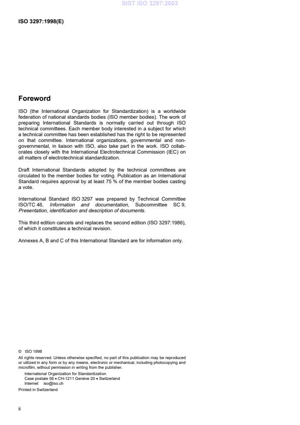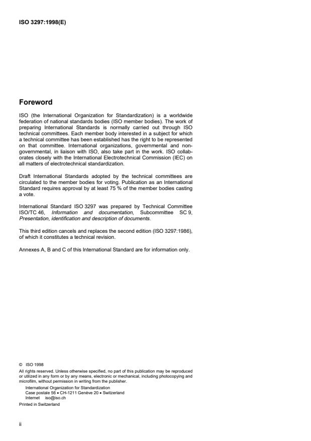 ISO 3297:1998 - Information and documentation -- International standard serial number (ISSN)