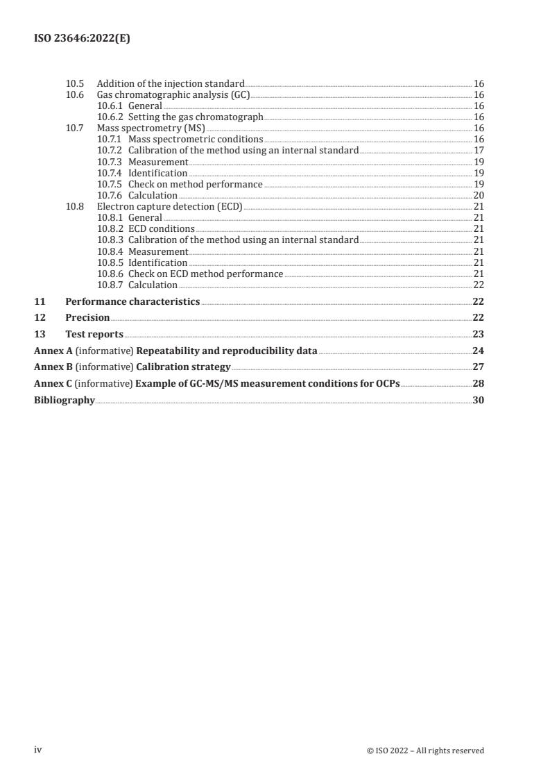 Keywords: ISO 23646:2022, soil quality, organochlorine pesticides, OCPs, GC‑MS, GC‑ECD, gas chromatography, mass spectrometry, electron‑capture detection, extraction, clean‑up, method validation.