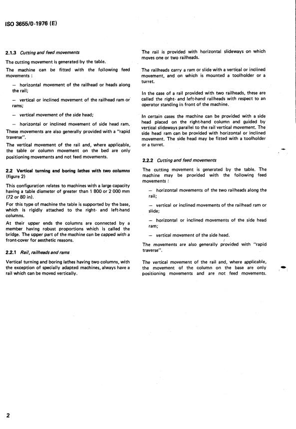 ISO 3655-0:1976 - Test conditions for vertical turning and boring lathes with one or two columns — Testing of the accuracy — Part 0: General introduction Released:10/1/1976