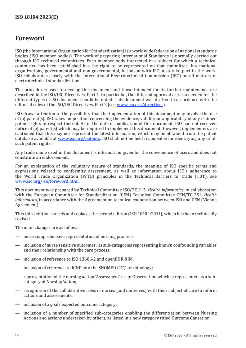 ISO 18104:2023 - Health informatics — Categorial structures for representation of nursing practice in terminological systems Released:5. 12. 2023