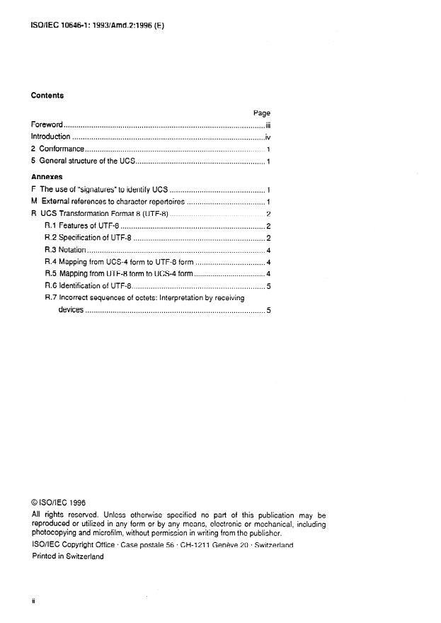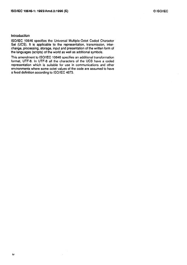 (Amendment)Information technology — Universal Multiple-Octet Coded Character Set (UCS) — Part 1: Architecture and Basic Multilingual Plane — Amendment 2: UCS Transformation Format 8 (UTF-8)
