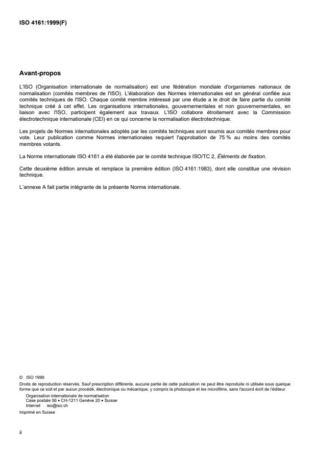 Cette deuxième édition annule et remplace la première édition (ISO 4161:1983), dont elle constitue une révision