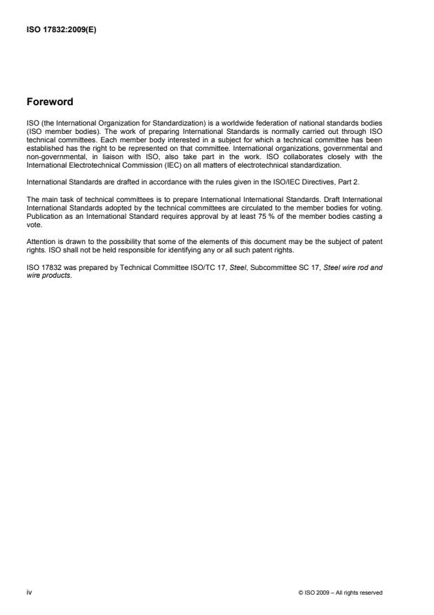 ISO 17832:2009 is a standard published by the International Organization for Standardization (ISO). Its full title is "Non-parallel steel wire and cords for tyre reinforcement". This standard covers: ISO 17832:2009 specifies the definition and requirements of unparalleled steel wire and cords for tyre reinforcement.