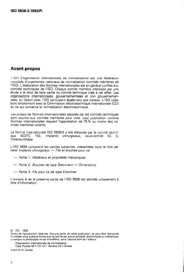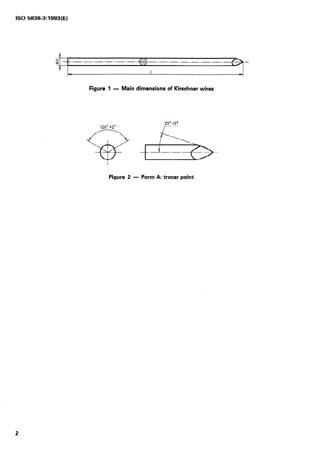 Keywords: ISO 5838-3:1993, Kirschner wires, K‑wires, skeletal pins and wires, implants for surgery, dimensions, marking, packaging, ISO 5838-1, ISO 6018, orthopaedic implants.