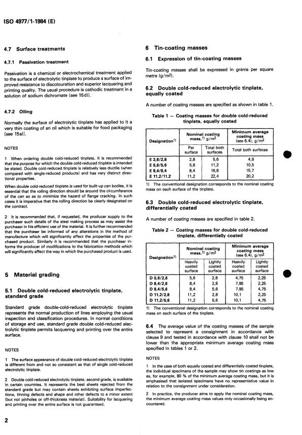 ISO 4977-1:1984 is a standard published by the International Organization for Standardization (ISO). Its full title is "Double cold-reduced electrolytic tinplate — Part 1: Sheet". This standard covers: Double cold-reduced electrolytic tinplate — Part 1: Sheet