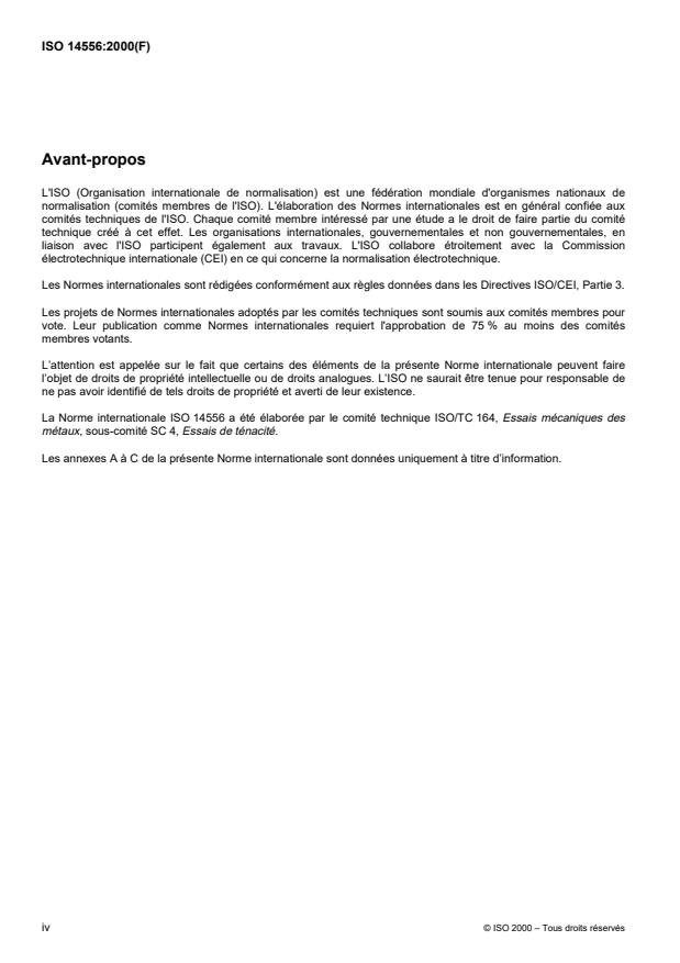 ISO 14556:2000 is a standard published by the International Organization for Standardization (ISO). Its full title is "Steel — Charpy V-notch pendulum impact test — Instrumented test method". This standard covers: La présente Norme internationale spécifie une méthode d'essai instrumenté de flexion par choc sur éprouvette Charpy à entaille en V pour les produits en acier ainsi que les prescriptions concernant le dispositif de mesurage et d'enregistrement. La présente Norme internationale peut être appliquée à d'autres matériaux métalliques par accord. Cet essai fournit des informations supplémentaires sur le comportement à la rupture du produit essayé.