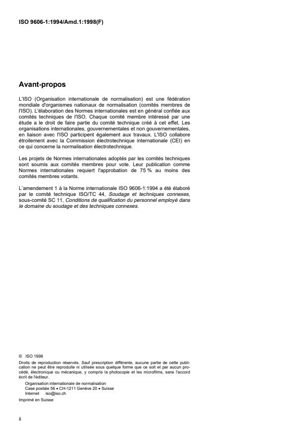ISO 9606-1:1994/Amd 1:1998 is a standard published by the International Organization for Standardization (ISO). Its full title is "Approval testing of welders — Fusion welding — Part 1: Steels — Amendment 1". This standard covers: Approval testing of welders — Fusion welding — Part 1: Steels — Amendment 1