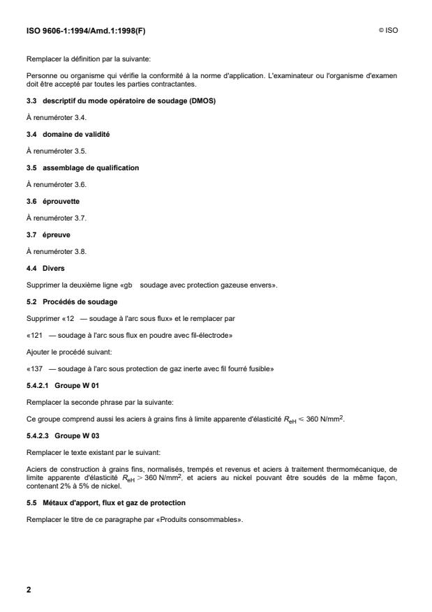 Qualification des soudeurs — Soudage par fusion — Partie 1: Aciers — Amendement 1