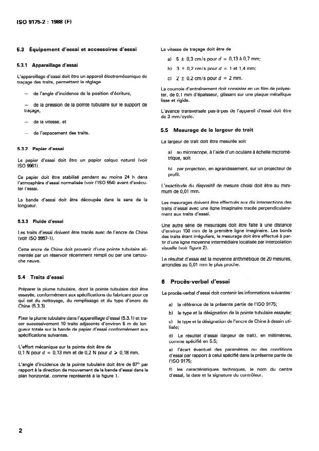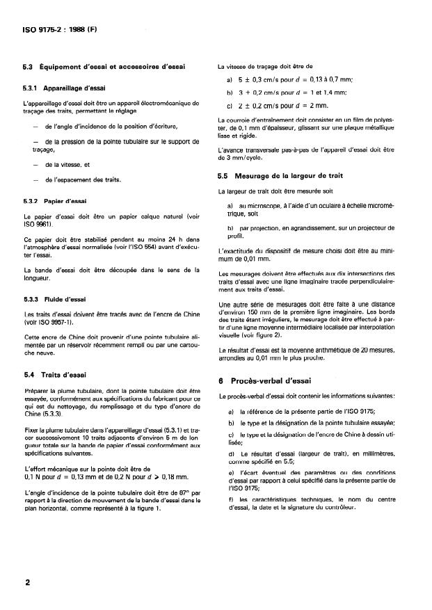 Pointes tubulaires pour plumes tubulaires et instruments de dessin à main à encre de Chine, utilisés sur papier calque — Partie 2: Performances, paramètres d'essai et conditions d'essai
