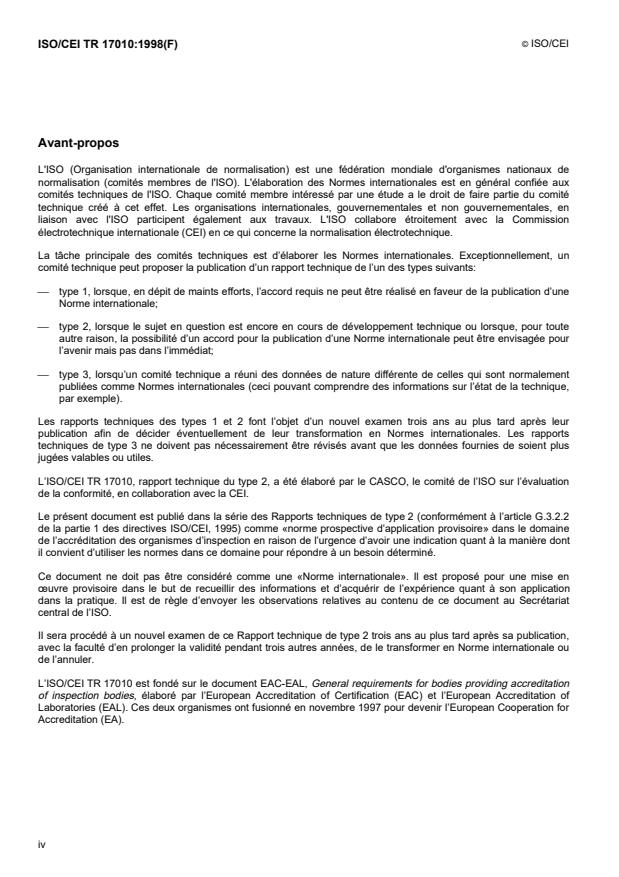 ISO/IEC TR 17010:1998 is a technical report published by the International Organization for Standardization (ISO). Its full title is "General requirements for bodies providing accreditation of inspection bodies". This standard covers: Le présent Rapport technique établit les exigences générales destinées aux organismes procédant à l'accréditation des organismes d'inspection afin que les accréditations octroyées et les services couverts par les accréditations puissent être reconnus au niveau national ou international, et que l'organisme gérant le système d'accréditation puisse être reconnu au niveau national ou international, comme compétent et fiable. Les utilisateurs de l'accréditation, autres que les organismes d'inspection, peuvent exiger la conformité à des exigences supplémentaires, en sus de celles mentionnées dans le présent Rapport technique. L'objet du présent Rapport technique est de fournir une base pour l'établissement et la gestion d'un organisme d'accréditation et de faciliter la conclusion d'accords de reconnaissance mutuelle d'accréditation d'organismes d'inspection entre ces organismes.
