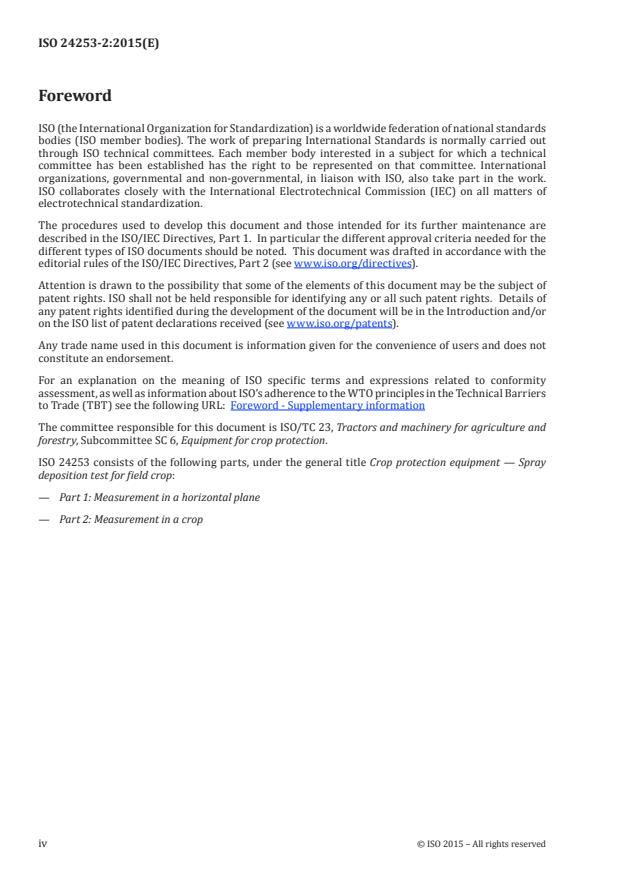 Keywords: ISO 24253-2:2015, spray deposition test, crop protection equipment, measurement in a crop, boom sprayers, tracers, collectors, meteorological monitoring.