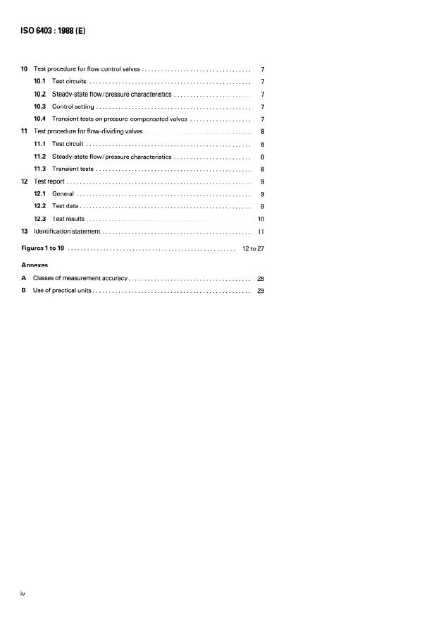 Keywords: ISO 6403:1988, hydraulic fluid power, valves controlling flow and pressure, valve test methods, pressure‑flow characteristics, proof pressure, measurement accuracy.