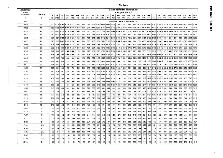 jauge E et du diamètre nominal de la machine à tricoter; elle NOTE - Le nombre usuel (arrondi) est donc un multiple de 12 ou 24 et