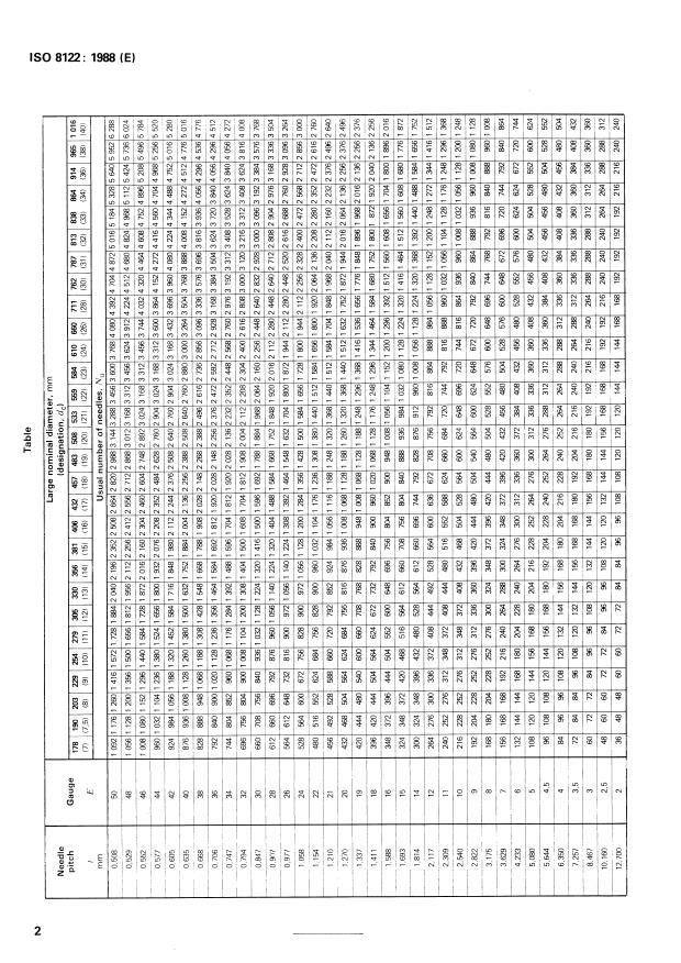 ISO 8122:1988 - Textile machinery -- Knitting machines -- Number of needles for circular knitting machines of large nominal diameter
