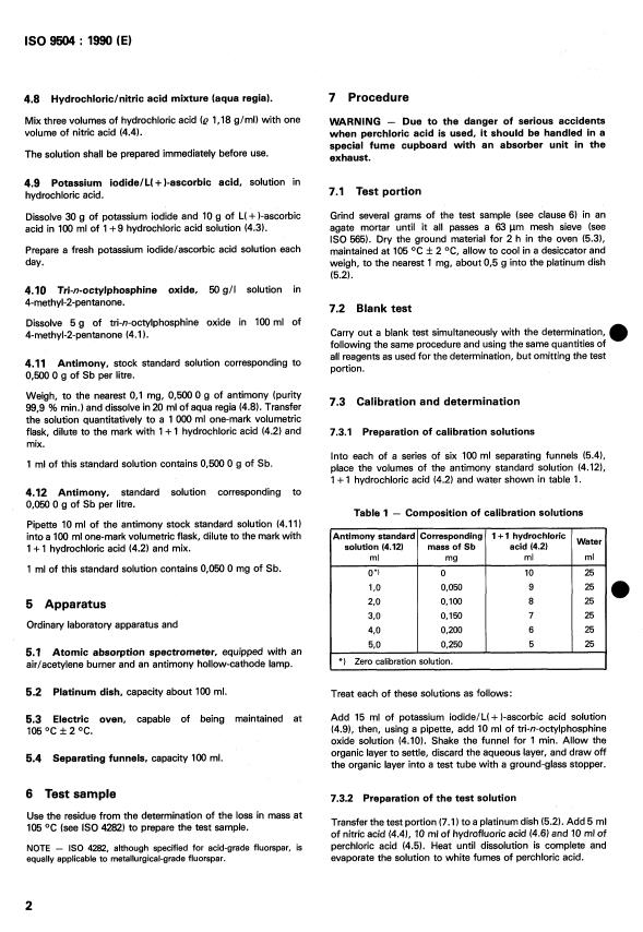 ISO 9504:1990 - Metallurgical-grade fluorspar — Determination of antimony content — Solvent extraction atomic absorption spectrometric method Released:6/14/1990