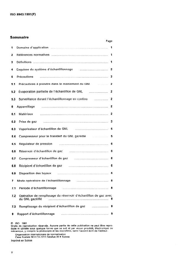 ISO 8943:1991 is a standard published by the International Organization for Standardization (ISO). Its full title is "Refrigerated light hydrocarbon fluids — Sampling of liquefied natural gas — Continuous method". This standard covers: Describes the sampling system, the apparatus, the sampling procedure, and the contents of the sampling report. Gives precautions. Specifies 15 terms and definitions. Annex A is for information only.