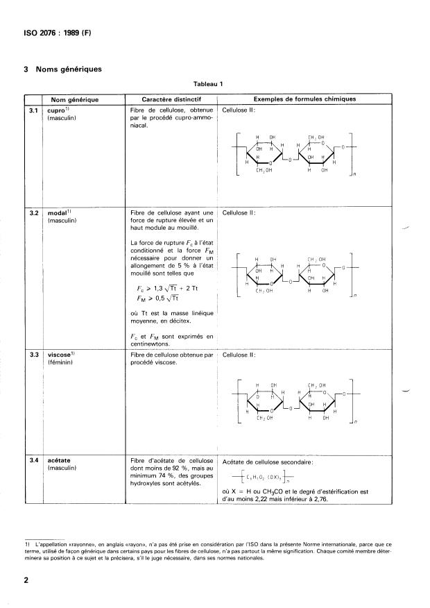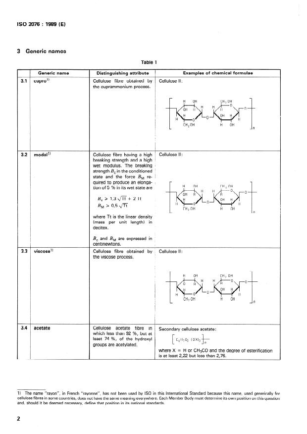 1) L’appellation «rayonne», en anglais «rayon», n’a pas été prise en considération par I’ISO dans la présente Norme internationale, parce que ce
