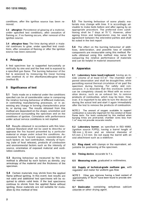 ISO 1210:1992 is a standard published by the International Organization for Standardization (ISO). Its full title is "Plastics — Determination of the burning behaviour of horizontal and vertical specimens in contact with a small-flame ignition source". This standard covers: Plastics — Determination of the burning behaviour of horizontal and vertical specimens in contact with a small-flame ignition source