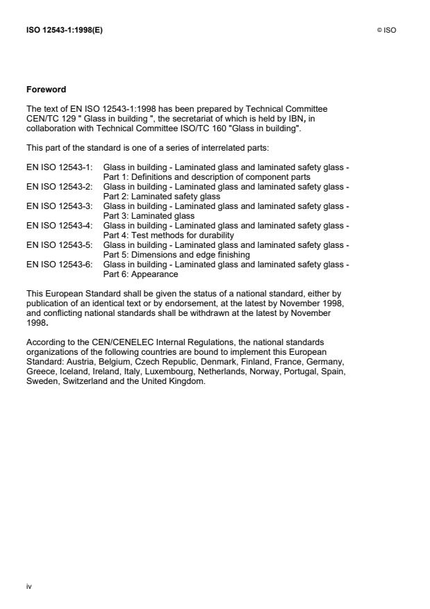 ISO 12543-1:1998 - Glass in building -- Laminated glass and laminated safety glass